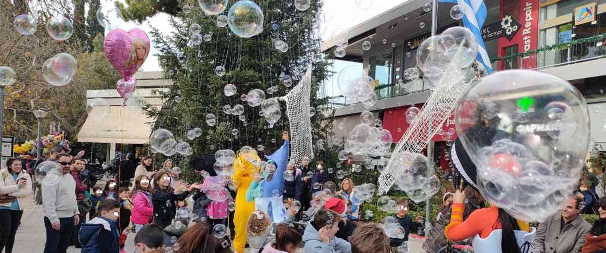Το Σάββατο 24 Δεκεμβρίου, παραμονή Χριστουγέννων, πλήθος κόσμου συνευρέθηκε και διασκέδασε στο κέντρο της πόλης. Οι μικροί φίλοι εντυπωσιάστηκαν από ξυλοπόδαρους, ζογκλέρ και όλοι απόλαυσαν το φαντασμαγορικό Bubble Show.