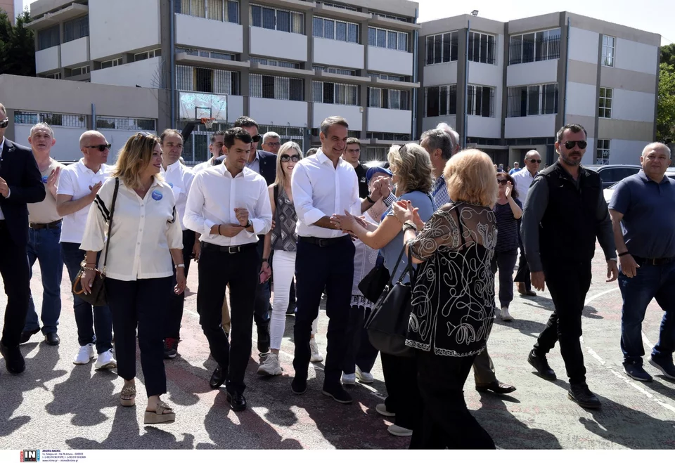 Ο Πρόεδρος της Νέας Δημοκρατίας Κυριάκος Μητσοτάκης συνοδευόμενος τα δύο του παιδιά, Κωνσταντίνο και Δάφνη, προσήλθε στο 361 εκλογικό τμήμα, στο 1ο Γυμνάσιο Κηφισιάς, για να ασκήσει το εκλογικό του δικαίωμα στο πλαίσιο των Βουλευτικών Εκλογών της 25ης Ιουνίου.