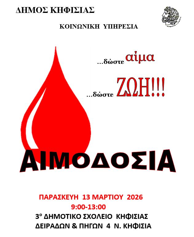 Εθελοντική αιμοδοσία από τον Δήμο Κηφισιάς στις 13 Μαρτίου